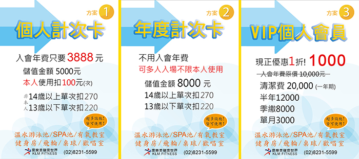 憑著多年的經驗我們有多樣化的課程:幼兒游泳課程、兒童假日泳訓、兒童寒假暑假泳訓、成人游泳教學、兒童體適能、私人健身課程、銀髮族健身(以上收費課程)