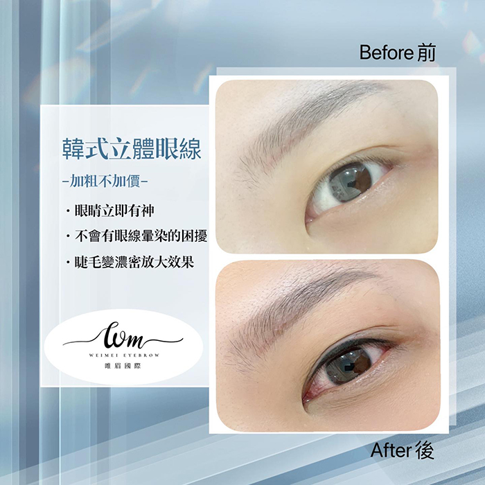 【唯眉國際美學美學院】目前主推「紋繡」服務,採用專業認證的紋繡色乳,紋繡後可以立即讓您的眉毛更加的有神,也不會有眼線暈染的困擾,睫毛還會有變濃密以及放大的效果,讓您的眉毛看起來更加立體有型!