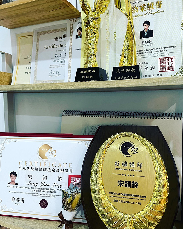宋齡老師擁有社團法人國際美業協會紋繡講師資格